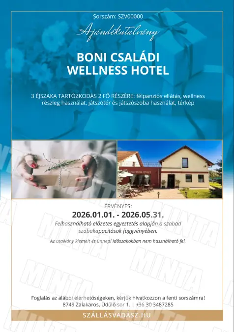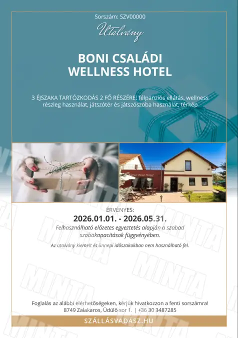 Az utalvány 2026.01.01. és 2026.05.31. között használható fel, szabad szobakapacitás függvényében, a szállodával előre egyeztetett időpontban.