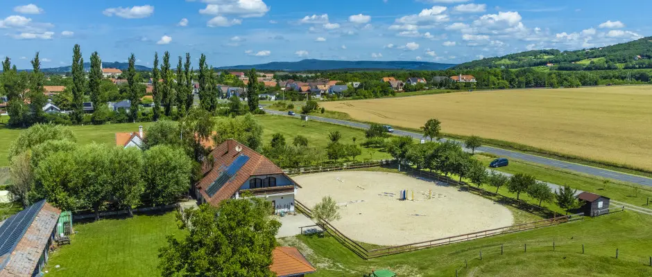 A Balaton-felvidéki Nemzeti Park szívében, a Csobánc-hegy lábánál elterülő lovasudvar hatalmas területén, patakoktól közrevéve, a ménes karámjaival övezve található a Lovasbirodalom Panziója és Vendégháza. A természettel harmonizálva, a panzió belső terei is vintage stílusban várják a vendégeket. A gyönyörű környezet mellett a lovasudvar elhelyezkedése lehetőséget nyújt gyalogos, lovas és kerékpáros túrák szervezésére. A szabadtéri pihenésre szolgáló kert, a kényelmes pihenőágyak, valamint a barátságos kutyák és cicák a kisgyermekes családok számára is ideális környezetet biztosítanak.