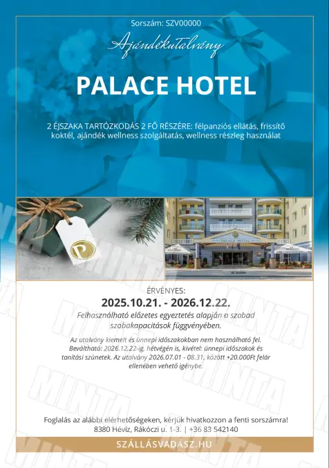 Az utalvány 2026.12.22-ig használható fel, szabad szobakapacitás függvényében, a szállodával előre egyeztetett időpontban.