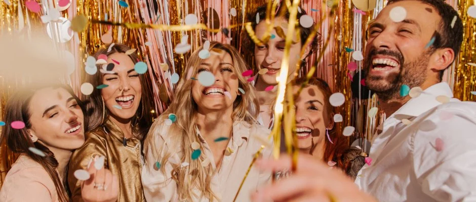 Éjféli pezsgő, koccintás és tűzijáték