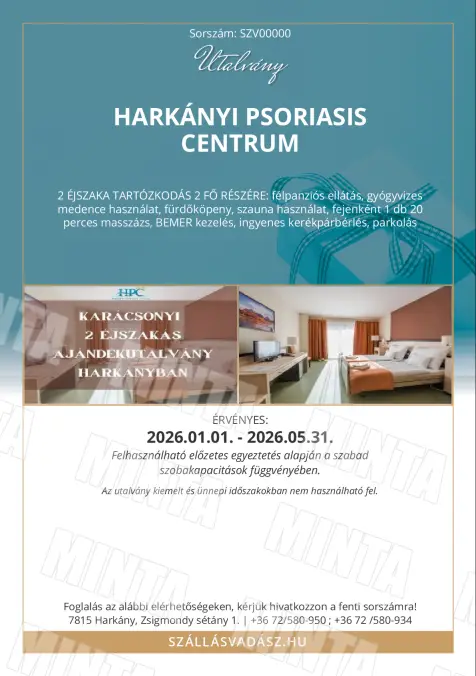 Az utalvány 2026.01.01. és 2026.05.31. között használható fel, szabad szobakapacitás függvényében, a szállodával előre egyeztetett időpontban.
