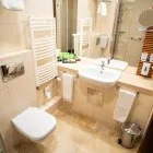 zuhanyzó vagy fürdőkád fürdőköpeny hajszárító piperecikkek törölközők tükör